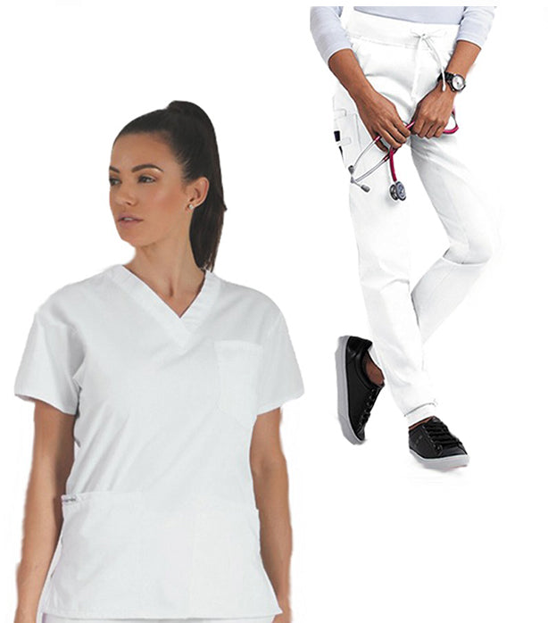 The Microfiber Women Jogger Scrub Set is made from premium Microfiber Fabric, crafted from 100% Polyester. This Scrub Set is available in 23 Colors and Sizes ranging from XXS to 12XL.