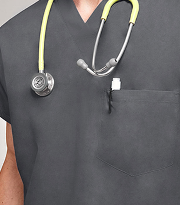 Poplin Unisex V-Neck Scrub Top - 1 Pocket, Half Sleeve